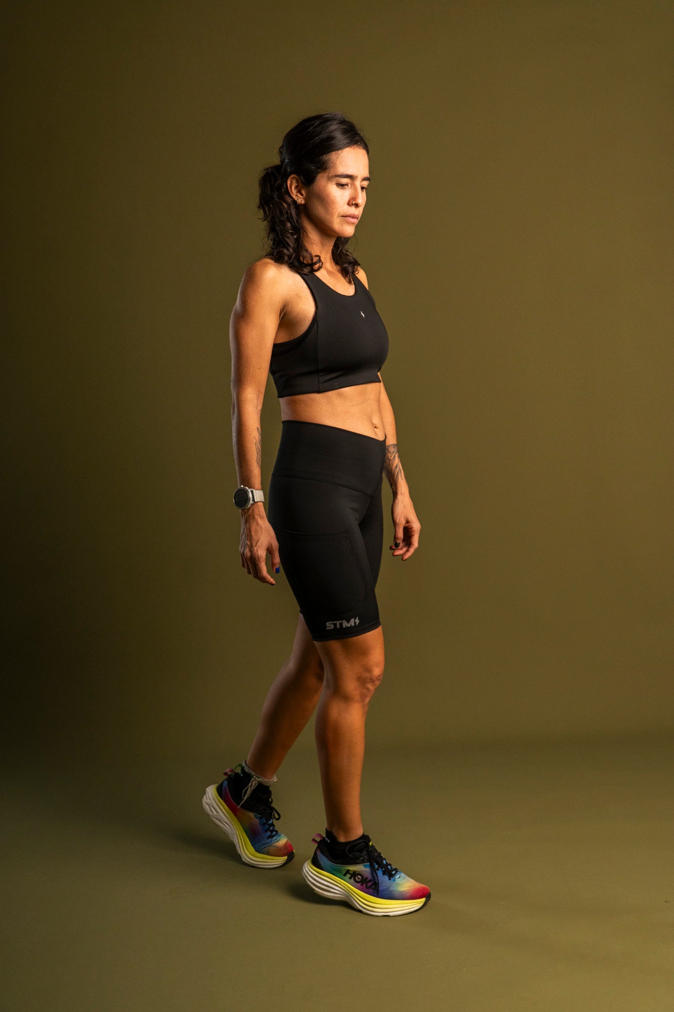 Bolsillos laterales funcionales para llevar celular, geles o lo esencial mientras corres.